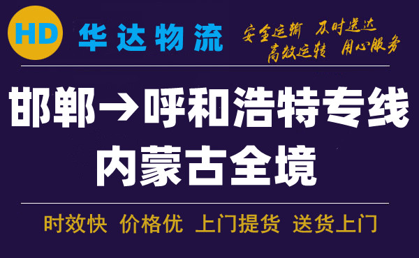 邯郸到呼和浩特物流公司 华达物流,可提供整车运输、零担运输、大件运输、长途搬家,回程车调用等物流服务,价格优惠,时效有保障,可以门到门服务,您只需一个电话,一切帮您搞定,邯郸都可以上门取货及周边各县。